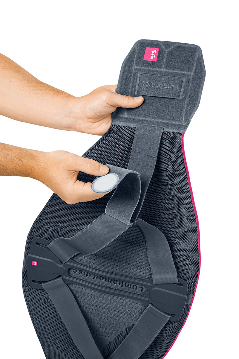 Поясничный бандаж-корсет LUMBAMED DISC оказывает эффективную помощь при лечении грыжи межпозвонкового диска и других заболеваниях поясничного отдела позвоночника. Компрессия вязанной манжеты улучшает кровообращение и питание тканей, что уменьшает отек и связанный с ним болевой синдром. Модульный дизайн (противоупор и ребра жесткости двух степеней жесткости) позволяет менять степень стабилизации в соответствии с этапом лечения. Рёбра жёсткости стабилизируют позвоночник, ограничивая болезненную подвижность поясничного отдела позвоночника, что уменьшает интенсивность болевого синдрома (возможен заказ дополнительного комплекта пластин с большей степенью подвижности для использования бандажа вне обострения).