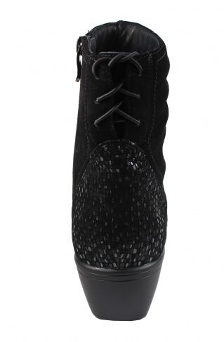Полуботинок снабжен несколько большей чем обычно уплотненной задней частью, сформированной из термопласта. Она позволяет надежно фиксировать пяточную область в естественном положении, к тому же задник держит форму достаточно долгое время. Изнутри ботинки достаточно широки, а вставка из трикотажа отлично растягивается, что позволяет добавить в обувь орто-стельку, индивидуально изготовленную.