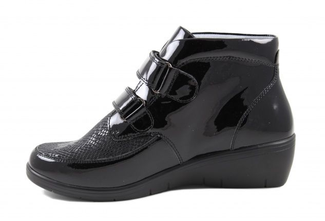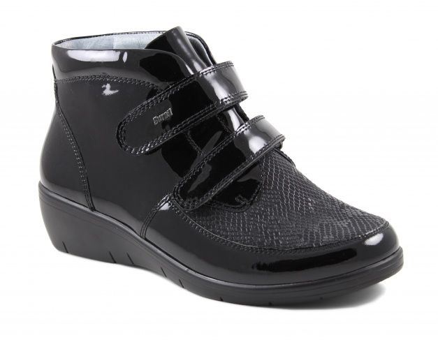 Полуботинок снабжен несколько большей чем обычно уплотненной задней частью, сформированной из термопласта. Она позволяет надежно фиксировать пяточную область в естественном положении, к тому же задник держит форму достаточно долгое время. Изнутри ботинки достаточно широки, а вставка из трикотажа отлично растягивается, что позволяет добавить в обувь орто-стельку, индивидуально изготовленную.