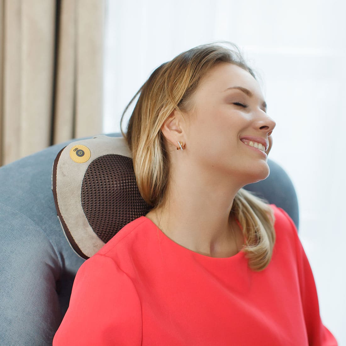 Если Вы регулярно совершаете длинные автопутешествия, рекомендуем Вам приобрести массажер Шиацу — тогда Вы забудете об ощущении затекшей шеи! 4 массажных ролика, оснащенных инфракрасным подогревом, осуществляют массаж во всех направлениях, помогая Вам нормализовать кровообращение, снять усталость, укрепить мышцы спины, поясницы и даже ног.