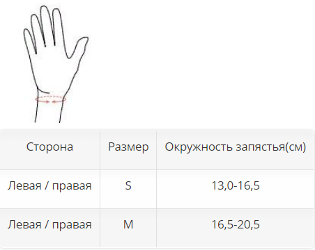 - регулировка охвата большого пальца (застежки "велькро")