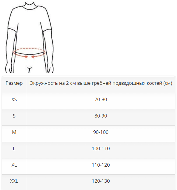 Подбор размера пояснично-крестцового корсета: