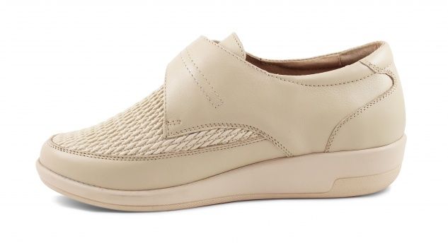 Обувь оснащена съемной комфортной ортопедической стелькой. Предназначена для женщин имеющих деформации переднего отдела стопы(в частности молоткообразная деформация пальцев) или повышенную полноту. Допускается ношение при сахарном диабете.